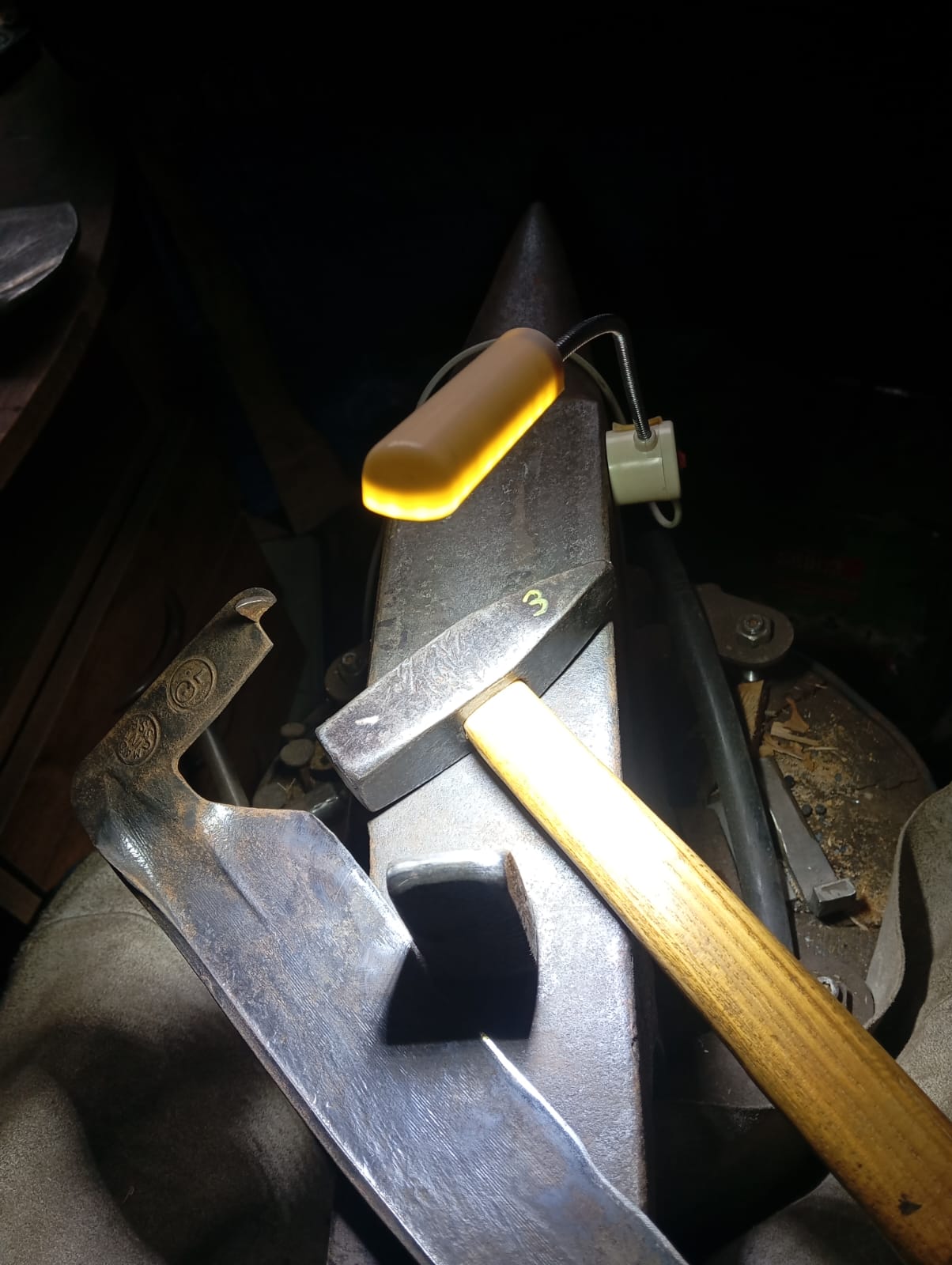 (K pokračování jsem se dostal později a mezitím se setmělo, tak jsem musel improvizovat s osvětlením, je více variant jak vykout ostří, ať už na klasické babce "ploché" nebo "ostré" nebo "naklepávačem"... )