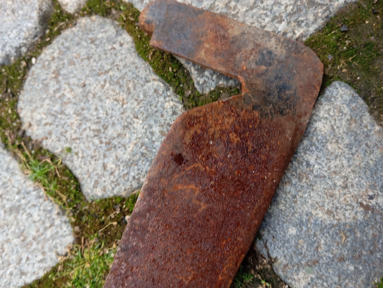 Kosa byla značně zrezivělá, nejrychlejší cesta je hrubý copánkový kartáč