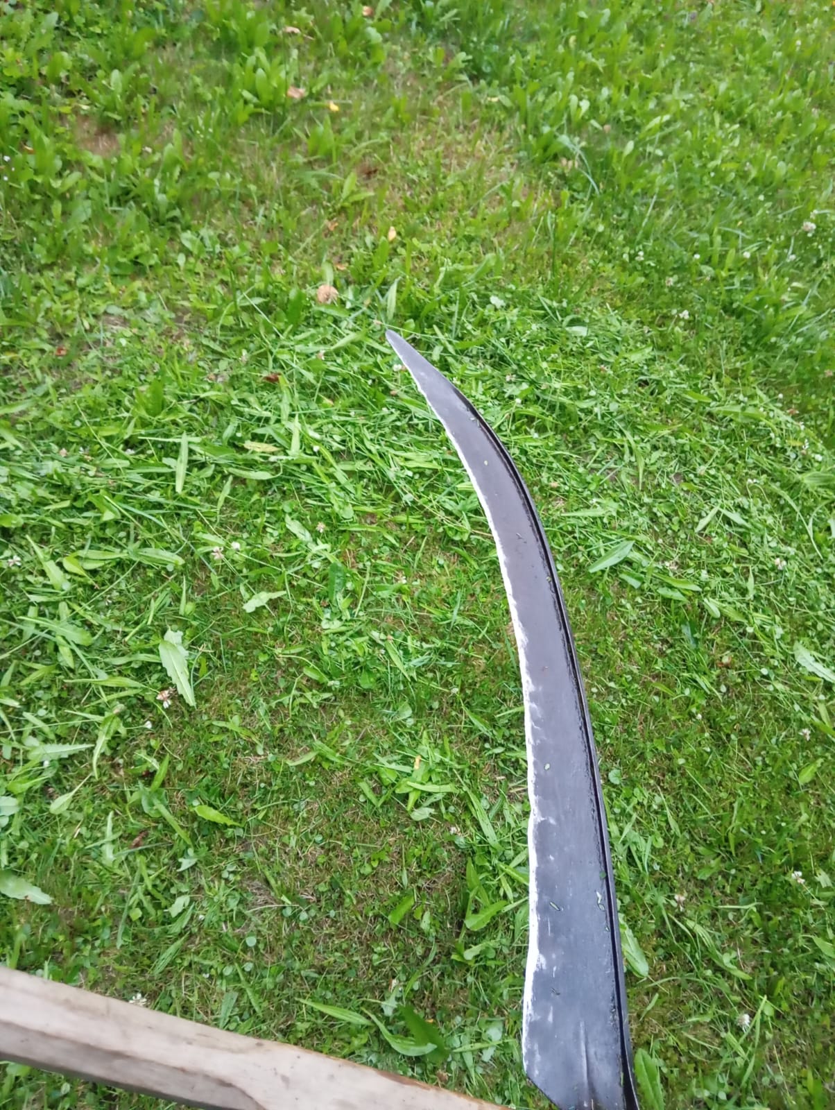 Já sám se mám spoustu co učit, na ostři jsou vidět vlnky, ale schválně jsem je tam nechal. Vím že se zarovnají broušením protože osoba, které jsem kosu daroval používá pouze hrubý brousek a nekuje. Záměr byl nechat co nejvíce materiálu na kose "ať je kde brát" i moje linka kutí není naprosto rovná... někdo by řekl "že s naklepávačem je to jednoduší" to nepochybně je, ale já ho nepoužívám. Baví mne to takhle a trochu nesouhlasím s tím jak naklepávač funguje.