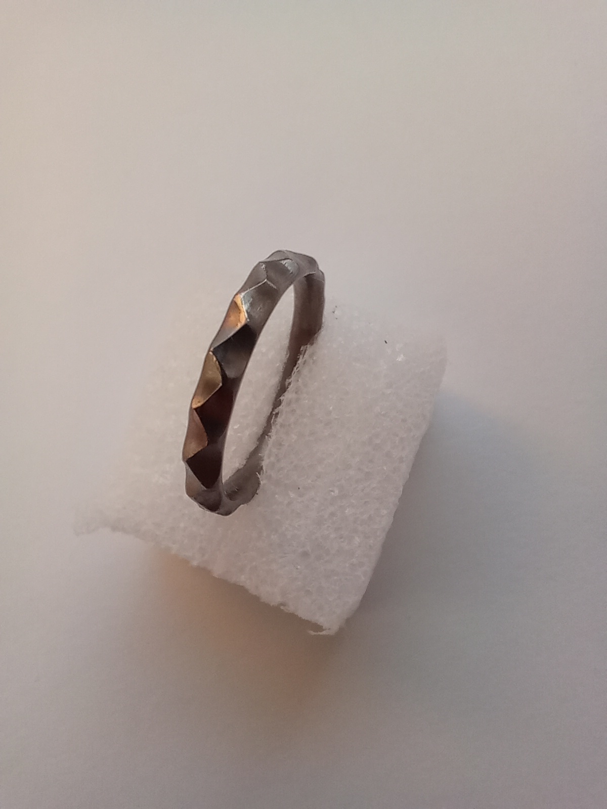 Pravidelná "obsidiánová" struktura dává tomuto titanovému prstenu velmi poutavý a jedinečný vzhled.