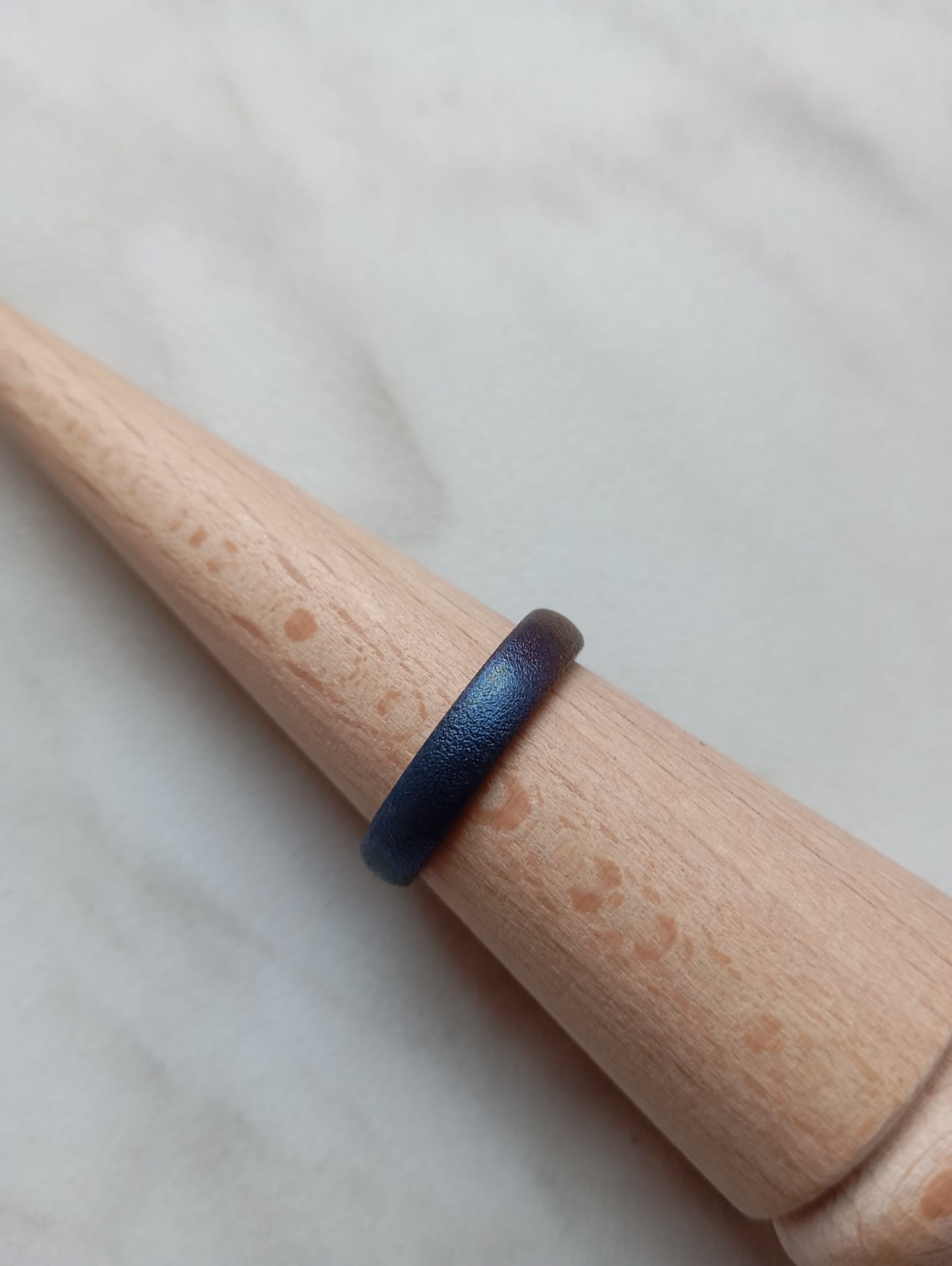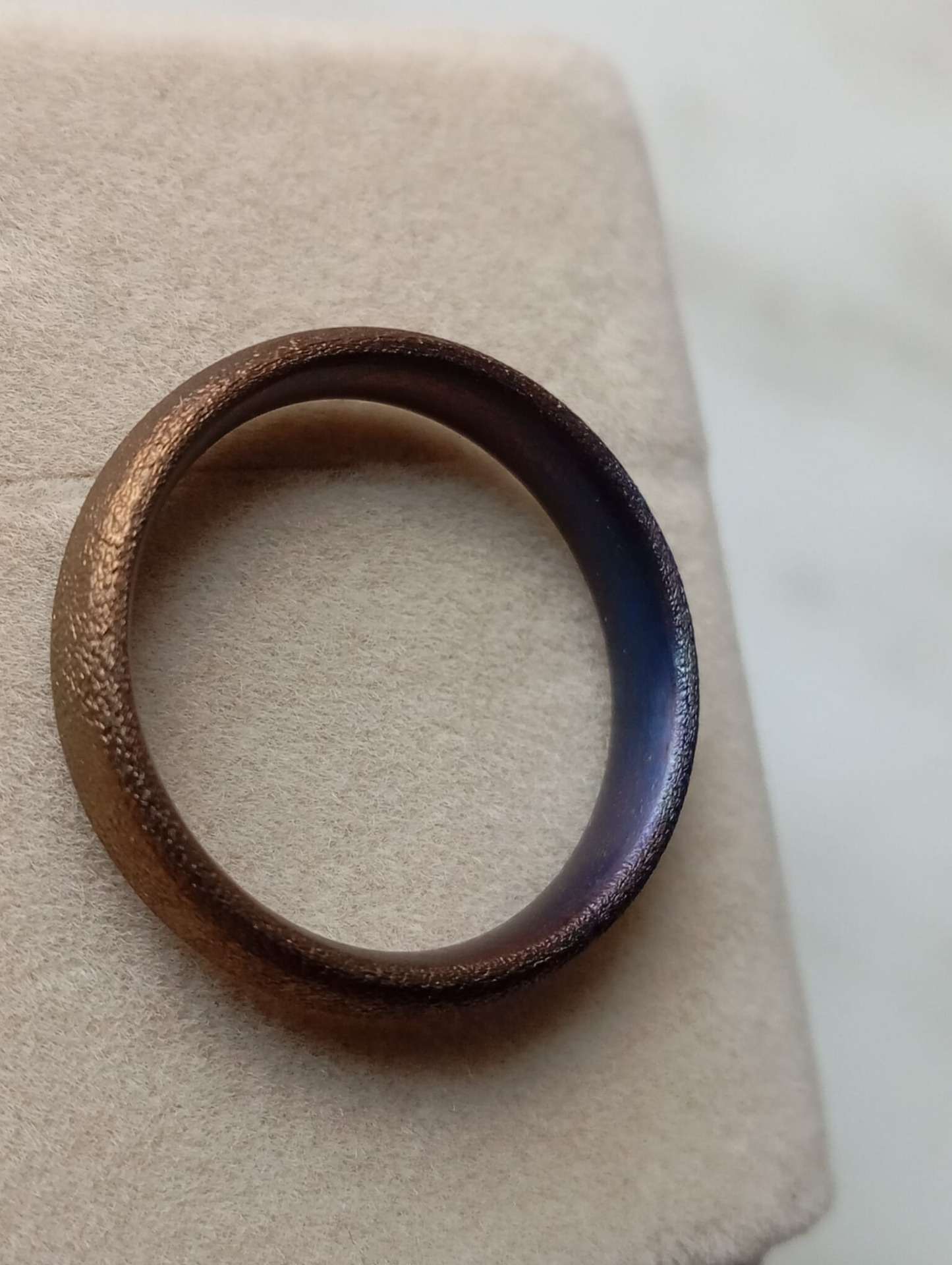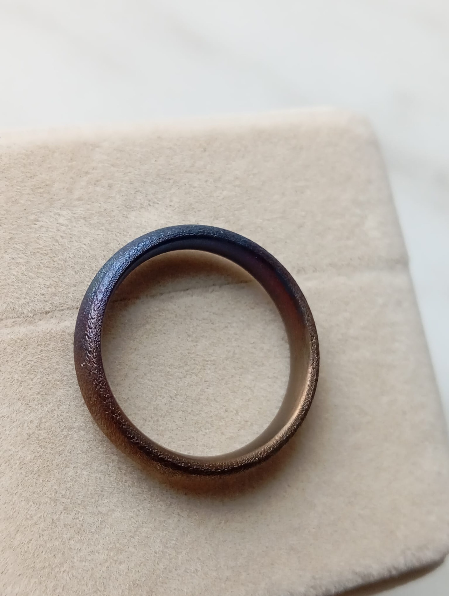 jemná pískovaná struktura povrchu a prolínající se barvy duhy tohoto prstenu z něj dělají unikátní šperk