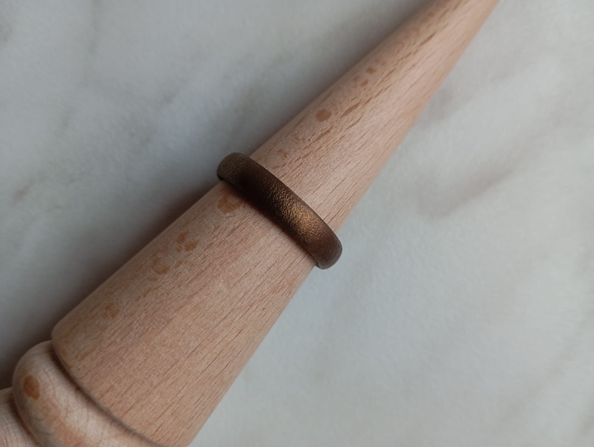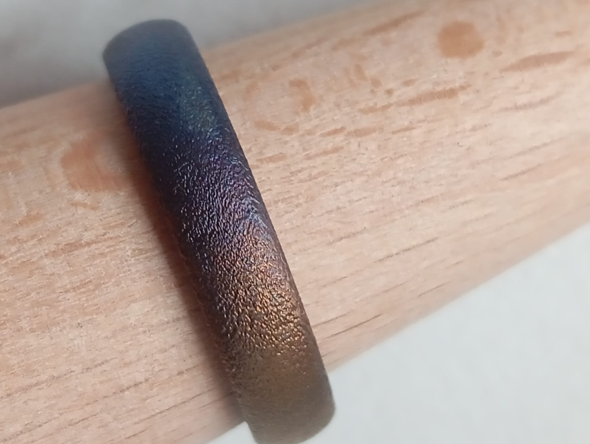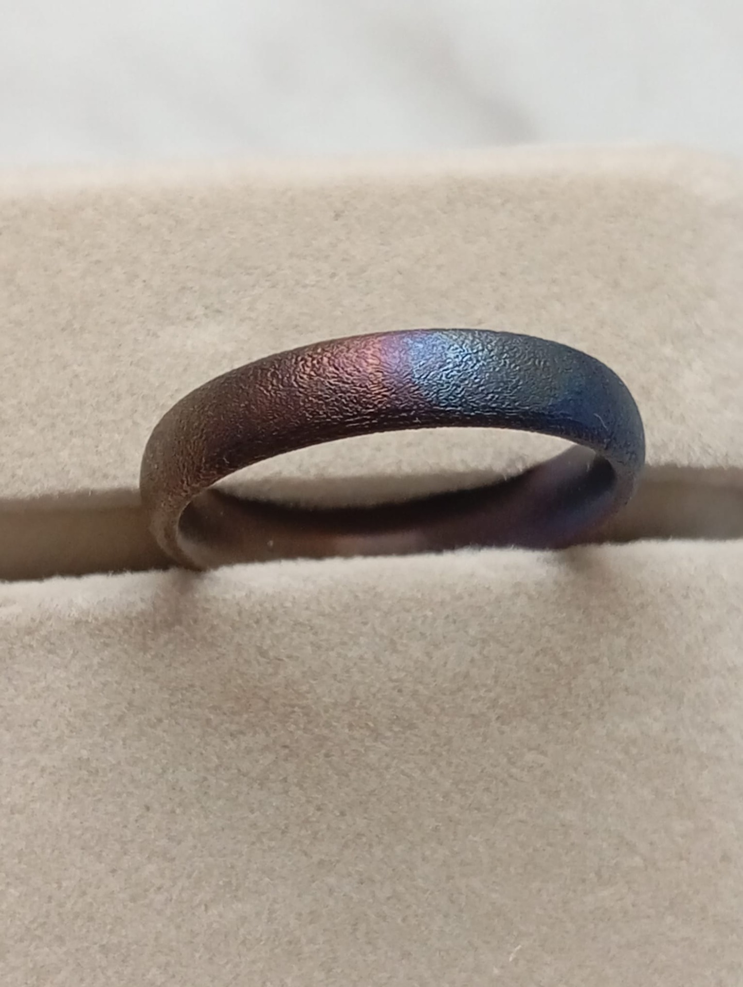 jemná pískovaná struktura povrchu a prolínající se barvy duhy tohoto prstenu z něj dělají unikátní šperk